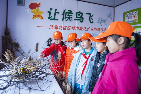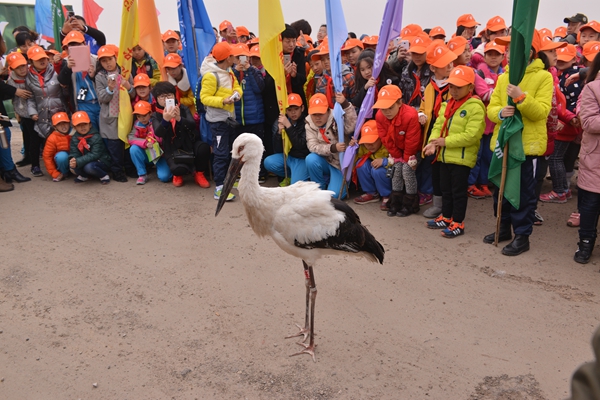 此次活动举行了队标揭幕仪式和授旗仪式,标志着滨海新区红领巾爱鸟护鸟小队正式成立。与会领导、少先队员和家长代表共同在“关注候鸟保护 守护绿色家园”爱鸟护鸟签名墙上郑重签名承诺。仪式结束后,与会人员参观了汇集少年儿童主题手抄报、绘画作品、手工作品在内的“让候鸟飞——滨海新区红领巾爱鸟护鸟创意作品展”。此外,当天还举办了东方白鹳放飞活动,现场几百名活动参与者见证了由滨海新区湿地保护志愿者协会救助后已经恢复健康的东方白鹳重新回归大自然的美好时刻。